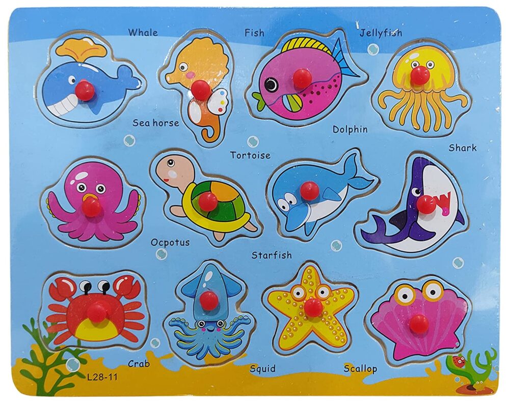 Toys Educational Sea Animals Wooden Puzzle Board Block Tray with Knob Learning Puzzles ₹239.00